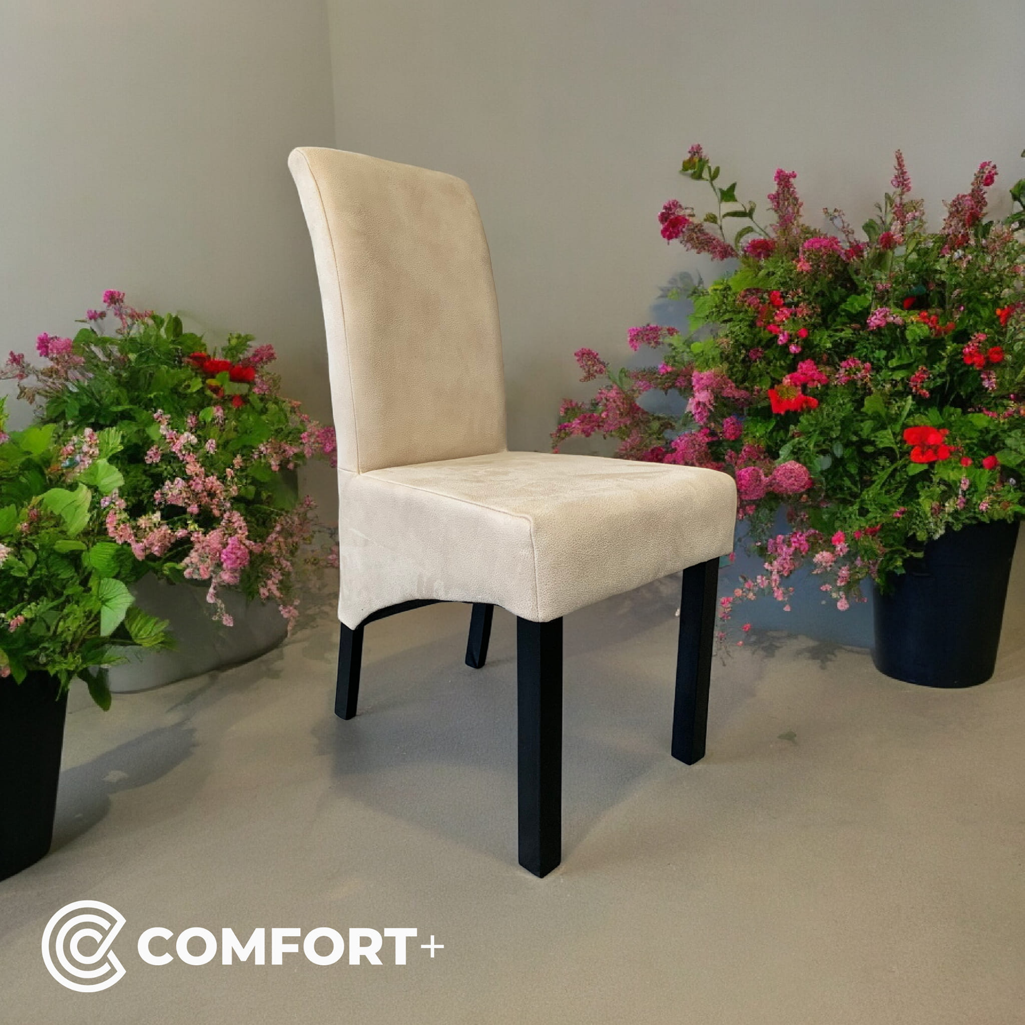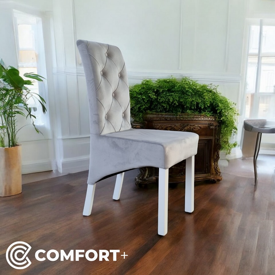 Izaberite između više od 300 dezena mebl štofa i eko kože prema vlastitom ukusu. Noge stolica mogu biti lakirane u bijelu, smeđu, crnu boju ili boju drveta, prilagođavajući se vašem interijeru.